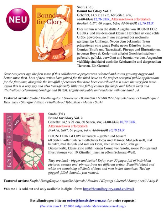 Oh my, this is already the third volume of the very gay and trans-friendly furry BDSM zine BOUND FOR GLORY.😍
