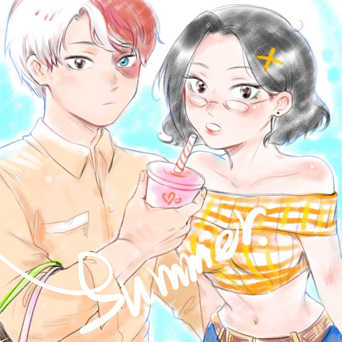 #勝茶ワンドロ (@kaccha_1dr ) #勝茶 #kacchako Little Bakugou& ochaco🧡 Hot summer!🍦