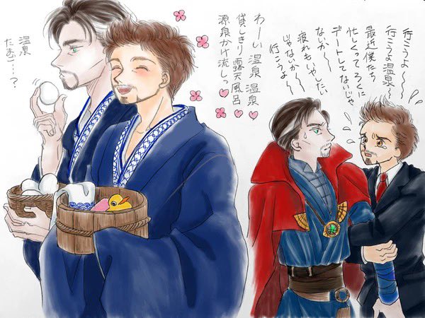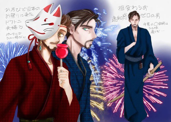 再録。暑中見舞い&残暑見舞いに描いたドクトニです♡2人とも浴衣姿が違和感無いですよね(笑)