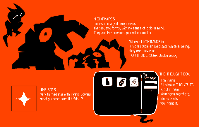 A possible RPG concept - Inspired by OFF and LittleBigPlanet. You play as the DREAMER, in the form of a Teddy Bear, wandering into your own little nightmare-filling world.