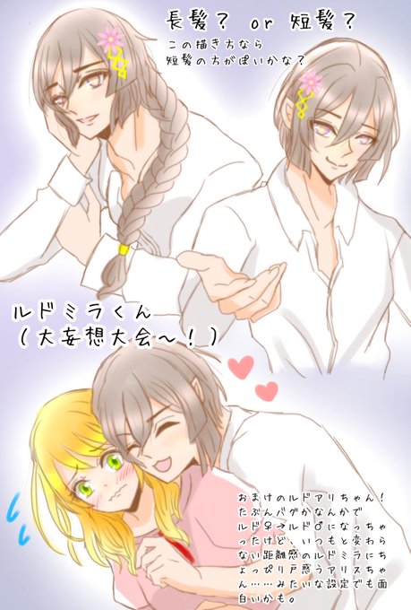 長く待たせてしまい本当に申し訳ありません💦リクエストのルドアリです!まっっっっったく独占欲丸出しのルドミラちゃんにならなかったんですけど、言い訳と言う名の説明は一枚目の画像の通りです😂
