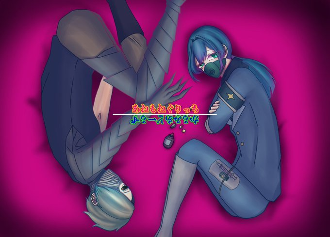 (⚠🤍💙擬人化&💊風味) 💙「きえた おもいでを したためて」 🤍「例え身体が壊れかけても」