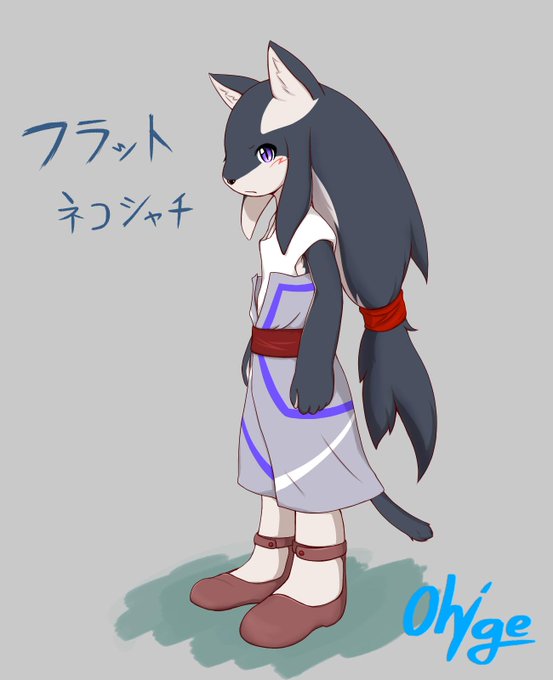 二人目のオリケモデザイン決めました この子はネコとシャチのハーフですが長所をつぶしあう組み合わせでシャチの遺伝子がありながらカナヅチという必ずしも良い混血ばかりではないということを象徴するキャラです