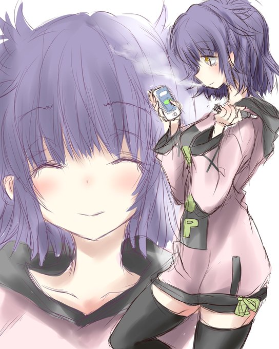【振り返り再掲】紫音は私のオリキャラ中1番辛い過去を経験してる設定の子です。今は大分普通体型になってますが、骨ばったガリガリめの女の子でした。唯一の喫煙キャラ。しかめっ面が多いけど不機嫌ではなくデフォルト。面倒見がよい。女の子の眺めるのが至福の時らしい。 #オリキャラ #一次創作