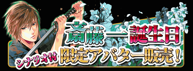 【華幕】本日、1月1日は華ノ幕末の斎藤一生誕日、おめでとうございます!記念アバターに着替えたり、美麗掛け軸を飾ってお祝いしちゃおう☆記念アバターには特別シナリオ付、蘇芳さんも登場して、ここでしか見られない一さんの一面も!?