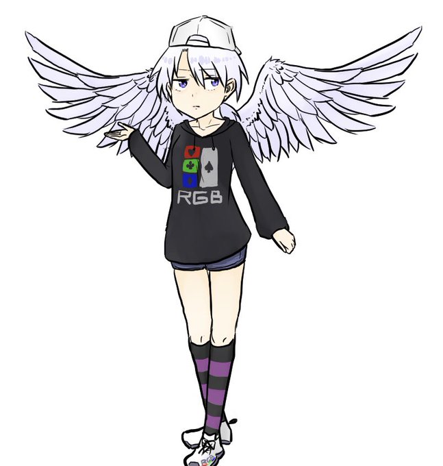 これは最近更新している小説「琥珀の翼」の主人公のコハク。この世界では翼の生えていない人類は絶滅しているため、存命の登場人物全員に翼が生えている。