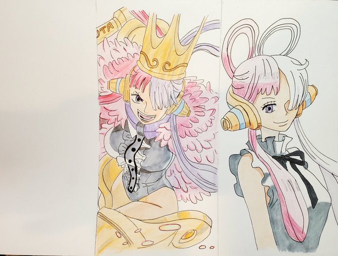 左は自分的ウタ、右はバーチャルウタかなって感じかな? ちなみに過去絵です(*ˊᵕˋ*) #絵描きさんと繋がりたい #フォロバ100 #ONEPIECE