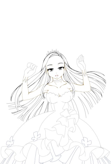 @mogumogupapan 2mmでラフをトレスして味付け、バケツ塗り