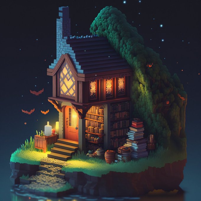 「voxel art diorama of 建物名」でMinecraftやLEGOで作ったみたいなジオラマが生成できる。