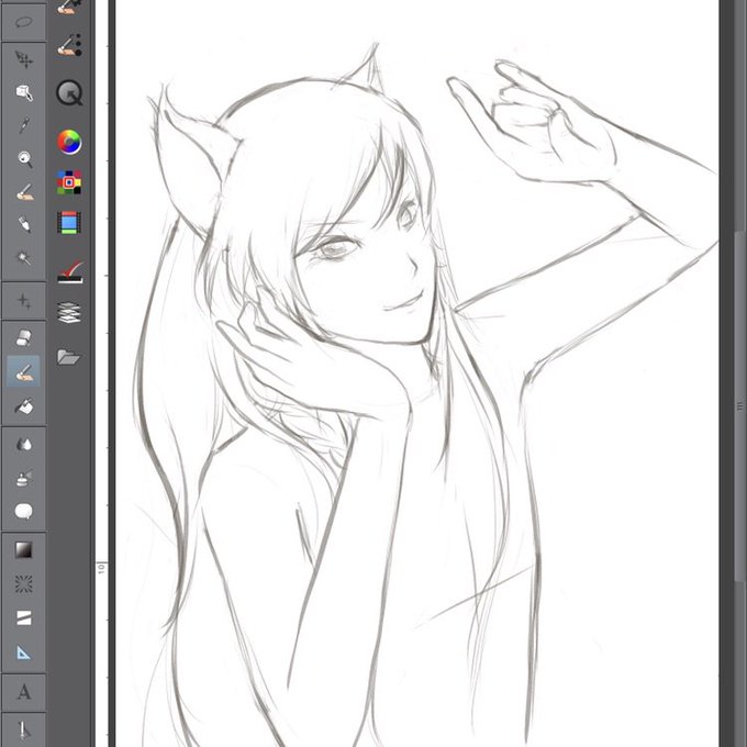 【メイキング①】ザクッと線画を描きます。線は後で塗りながら消えていくので不透明度50%くらいで。髪の方はコピーして色を変えてから、今回はそれぞれベースをバケツツールで塗りました。→