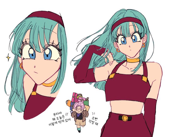 왼쪽은 너무 잘났다는 이유로 차인 트랭크스 위로해주다가 갑자기 궁금해져서 함 보는 오천이(뭔가 이상함)... 오른쪽은 책상위에 올라가서 입으로 오반이 안경 벗겨주는 트랭크슨데 인체가 구려서 아래를 잘랐어요...