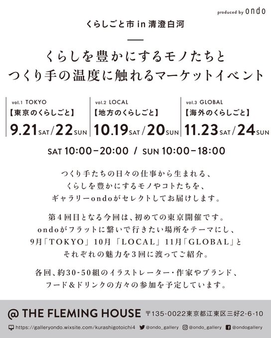 9月&10月&11月と「#くらしごと市」を連続で開催します。