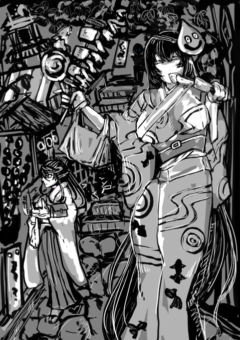 この版画みたいなごんぶとブラシ作画も気に入ってるけど骨折前の絵なのでたぶん今の筋力じゃ描けない