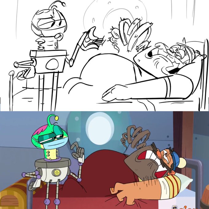 Here’s a few screen grab to board comparisons for last Friday’s new #Middlemostpost episode, “Boom goes the Cloud!” This was the first ep I boarded so there will be lots more to come with each ep 🌈☁️✉️ (1/2)