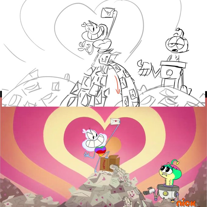 Here’s some choice Storyboard to final picture comparisons for last weeks new #middlemostpost episode, “Love Letters!” 💌 (1/2)