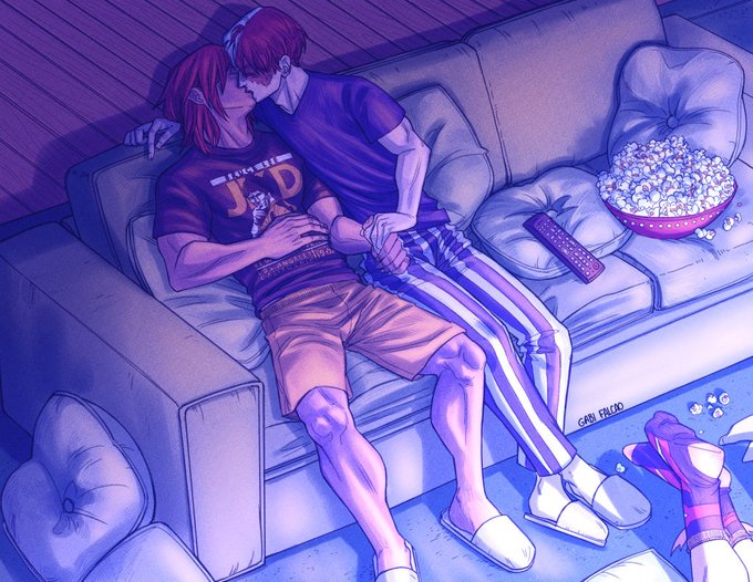 #nsfw Commission for @/Lorelei_Sekhmet of PH!Bakusero, in which Sero fell asleep while vibing to his music and Baku arrived from his duty and couldn't resist how soft his husband looked 🥴❤️