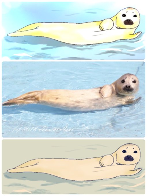 あざらしの表情とポーズがなんとも可愛かったので描いてみました