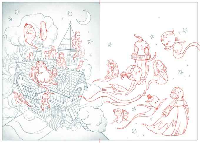 In other news, the ghosties are shaping up! So much for setting the general darker tones before adding details, eh... I used the wrong approach my entire life an it'll eventually bite back! 😁👻
