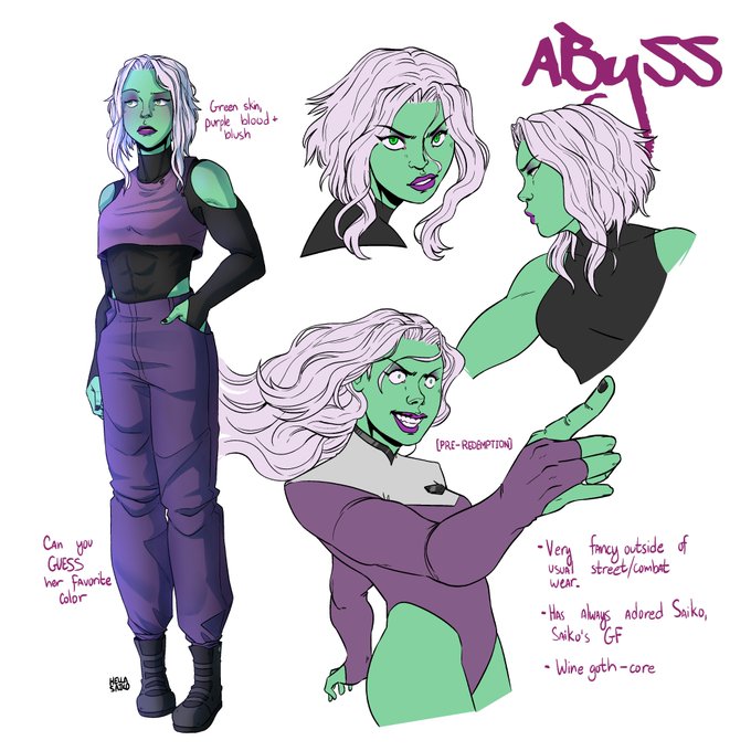 "A high ranking officer within Destaliah’s ranks. She is sent off to retrieve Saiko Deusoki from Earth, constantly fighting Saiko and her friends. [...] Every encounter they had, however, Saiko would have the upper hand, & Abyss would have to retreat.
