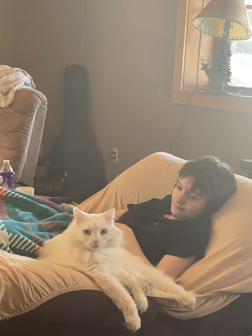 Amity and Ghost! Based off of a picture of me and my cat Snafu!