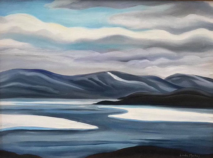 Happy 🌎 day! Here is Linda Mackey's Sylvia Grannel Park, Iqaluit. Oil on Board. 2006.