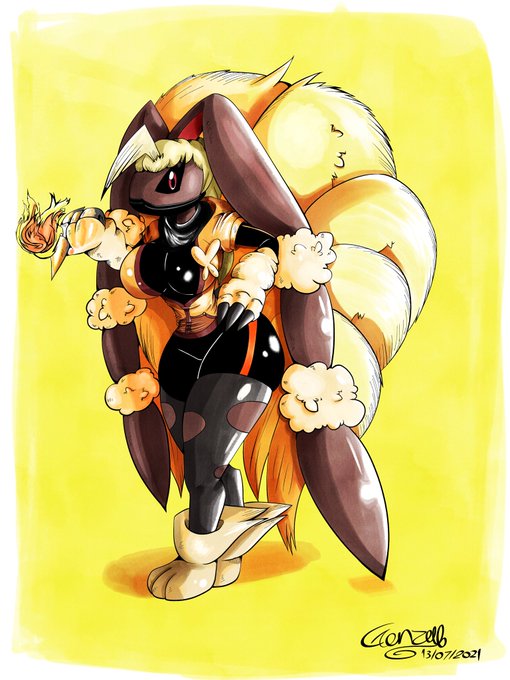 Shania the fusion of Mega Loppuny, Flareon and Ninetails.