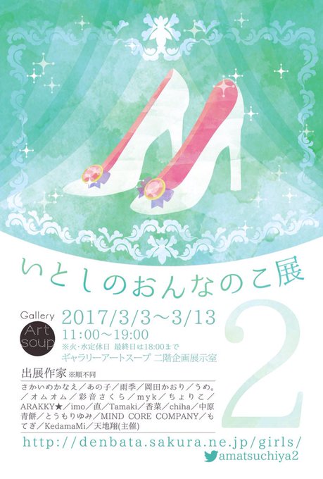 主催作家様は県内で活躍中の天地翔@amatsuchiya さん。ハッシュタグは #おんなのこ展2 !
