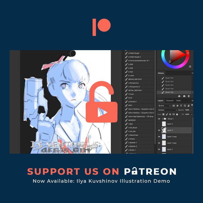 Become our Patreon member to watch the this nearly 2 hour 13 Sentinels painting demo by @Kuvshinov_Ilya. Plus several other educational patron only videos. Become a member here: https://t.co/Dx3stfmcSr
