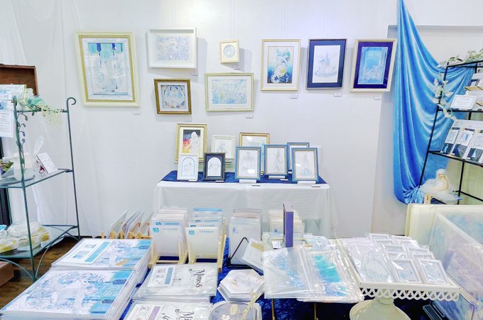 イラストレーター憂有(@yy_sl )個展、4日目オープンしております。少女たちのふわふわの髪、キラキラと輝く「星の子」など、原画ならではの奥深さをご覧ください。