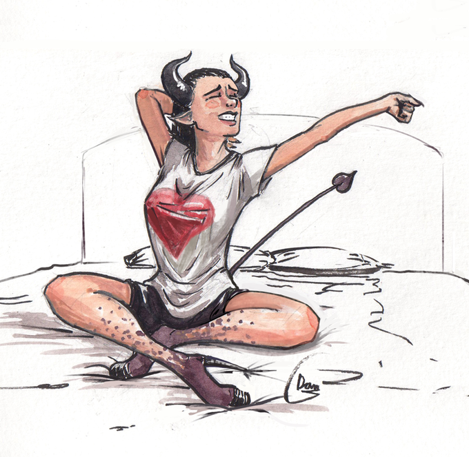 Cleaned up another water color from a few years ago for cutie Saturday. Sleepy demon girl.