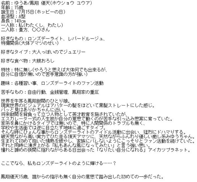 アイプラのマイキャラ、ゆうあちゃんの情報を軽く更新したので是非見て欲しいしすこって欲しい (created by @usawhip15 )
