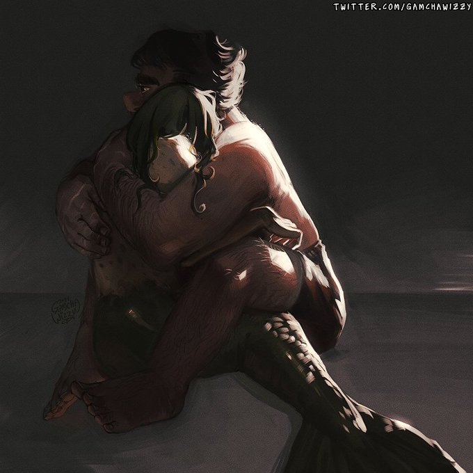 Ah, yes. Me. My husband. And our terrifying sea monster wife.