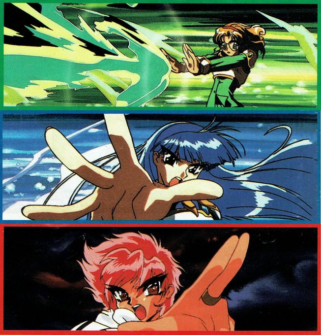 ‘Magic Knight Rayearth’, a SEGA Saturn RPG based on the CLAMP animation series. This was the Japanese cover artwork for the game.