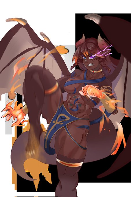 While an Amazon Dragon, shes more accurately a fire goddess. Combine that with ability to create lightning mana and sand manipulation magic and you have a hell of a martial artist with magical offense and defense.