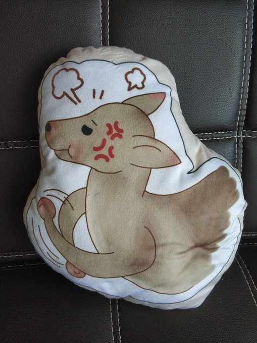 Our designer designed and made a super cute little pillow based on a recently super hot "Kangaroo Shake" emoticon. This is really cute.😍😍😍