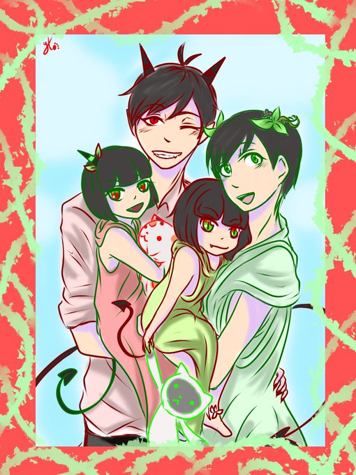 Yo también quería dar algo de DeviMega al mundo Uwu imaginando una linda familia feliz 😈😇❤💚🍎🍏