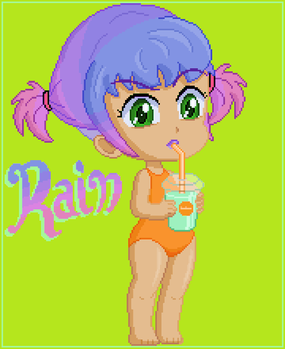 #pixelart of a new OC I made today Their name is Rain Miellat, they love honeydew milk tea (no bobas!) I haven't decided on age, gender or anything else yet #mspaint #OC #chibiart