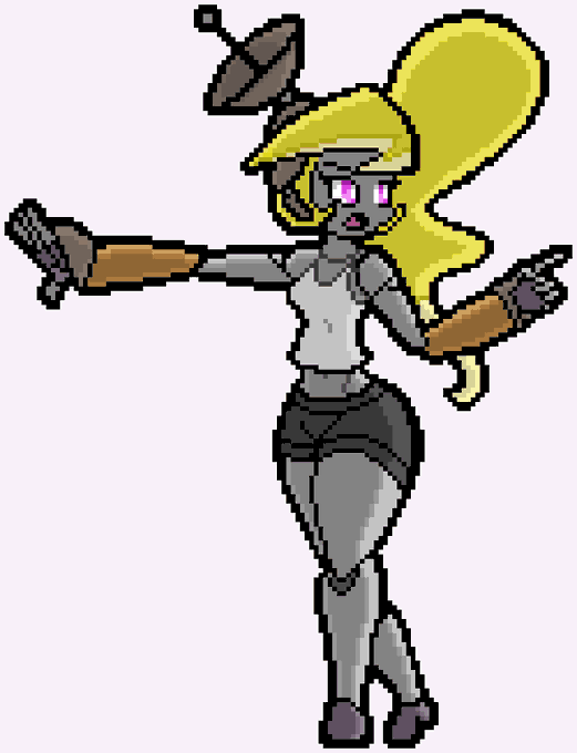 #pixelart of Flux, from the comic PV02 by @zedrinbot