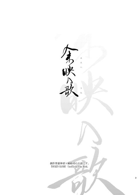【web再録】余映の歌(1/5) 発行から2年、再販予定もないためweb再録とさせていただきます。 お手元にお迎えくださった皆さま、まことにありがとうございました! 支部:https://t.co/k0CDVi8Fra SHARE:https://t.co/VPEpsjzyEG (※URL先おまけ頁まで完載)