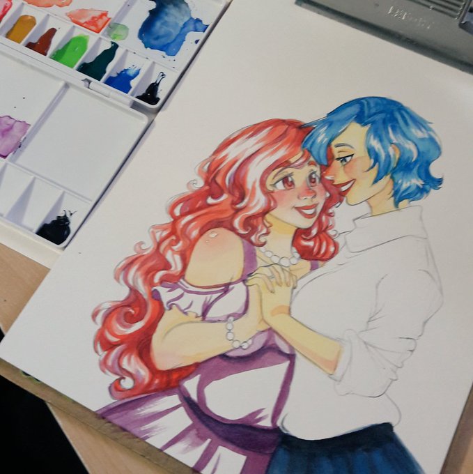 Yesterday friends and I had a gift exchange <3 and I had the pleasure to draw @BiancatStella's characters as a gift~ Hope you liked it Bianca! I love these cuties ♡