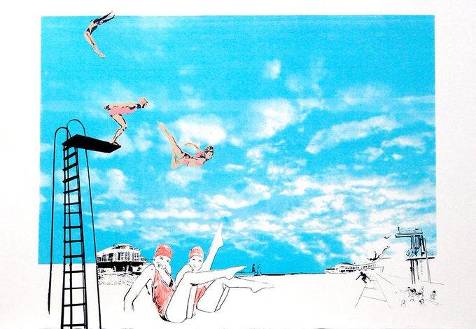 #Saltdean #Lido #artdeco design in this great screenprint by Anna Marrow - showing this wknd @PullensYards