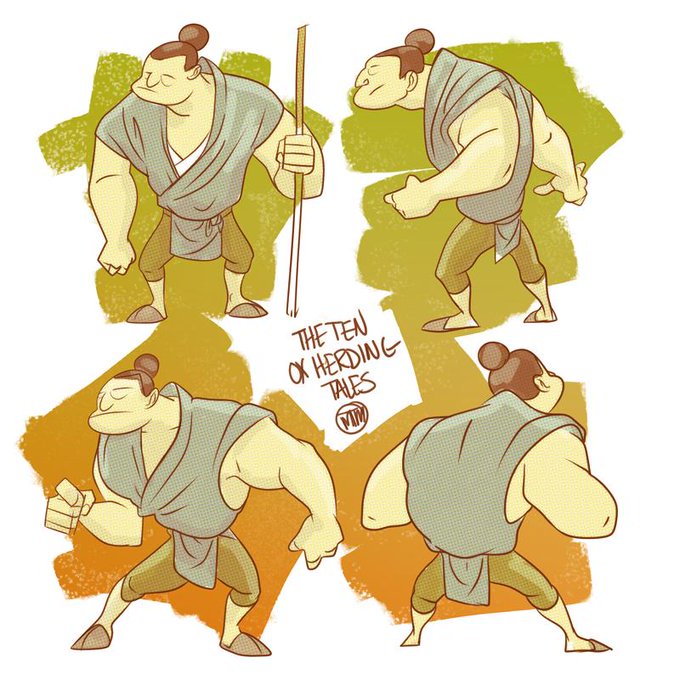 Some turn around drawings based on the Ox Herder from earlier today.