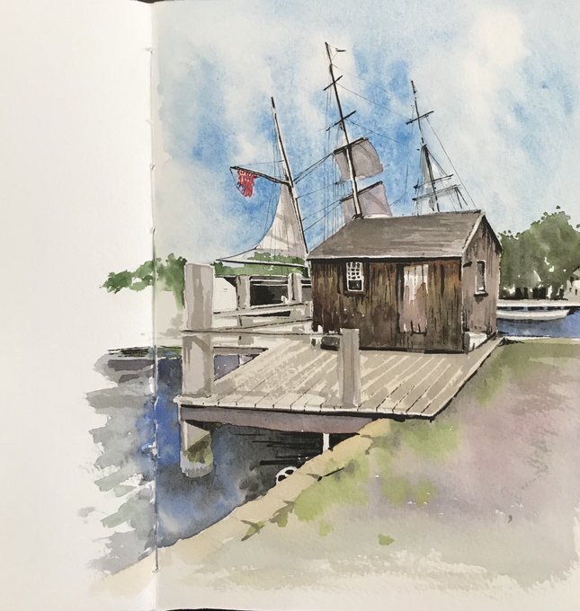 Better weather today #sketch #watercolour #Mystic #observationaldrawing #sunshine #summer #vacation #holiday @Mystic #schminke #childrensbookillustration