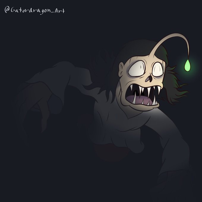 Out of the inky abyss comes a ghoulish anglerfish mermaid child. Little Moonshadow puts on her game face for MerMay!