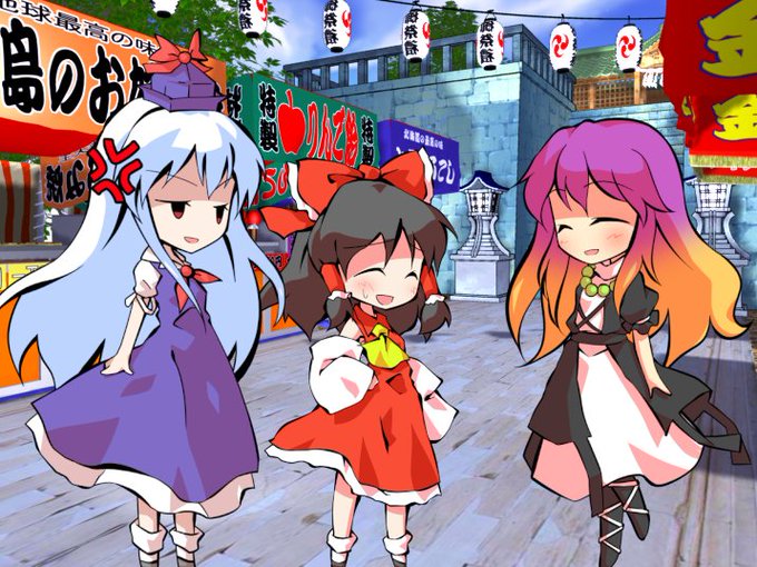 近年人間と妖怪が対等に交流出来る機会が増えてきていて、その変化を聖さんは非常に喜んでいたのでお祭りの準備中に出会った霊夢を褒めていたら、霊夢と一緒に居た慧音さんから軽くジェラシーを向けられると言うシチュエーションをイメージした画像を制作させて頂きました(立枝素材・はるか様)