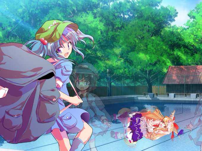 萃香「おーい!にとり、プールに入れる液がまだ足りてないよ!」にとり「は、はい!萃香さん、巨大化用の液お待たせしました!」昔の空想科学読本で見たウルトラマンが巨大化する方法を科学的に解明するとこうなるんじゃないかと言うネタを東方でやってみましたw(キャラ立ち絵素材・はるか様)