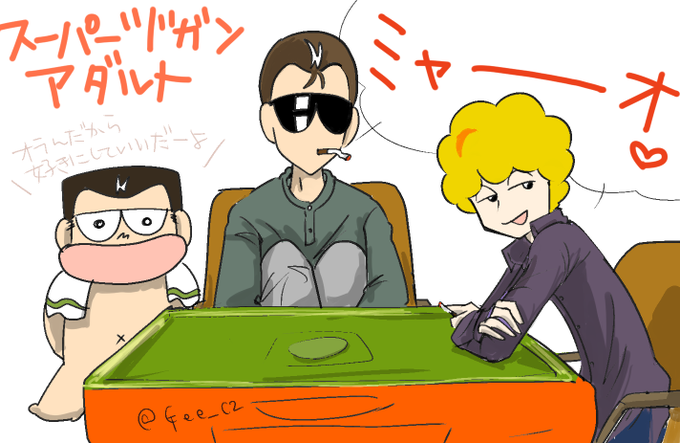 近代麻雀深夜のお絵描き60分一本勝負、23:00~24:00(LAST) お題:C【食えない奴 (等)】ヅガンの三人組っしょ!このシーンしぬほど好き!@kinma_1doro #kinma_1doro