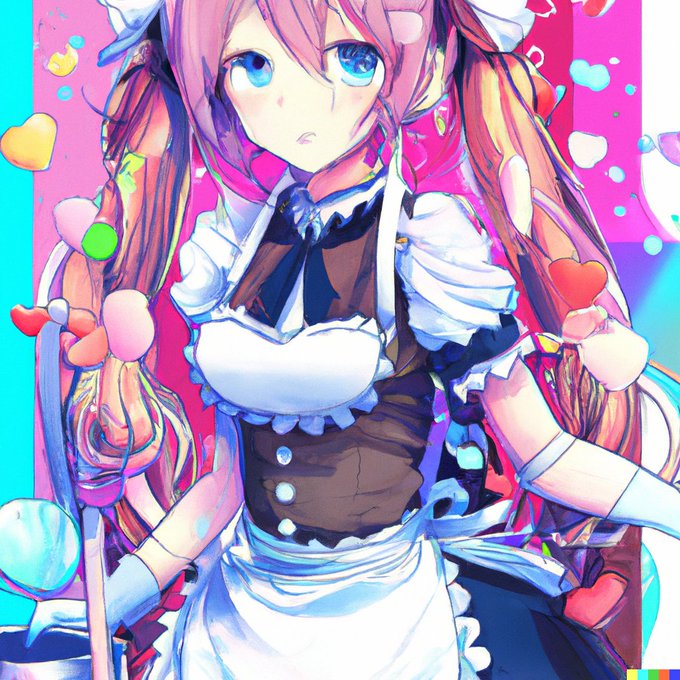 Just type in "twintails anime girl in a maid uniform doing with cool composition" and got a pretty shocking result 😳 #dalle #aigeneratedart