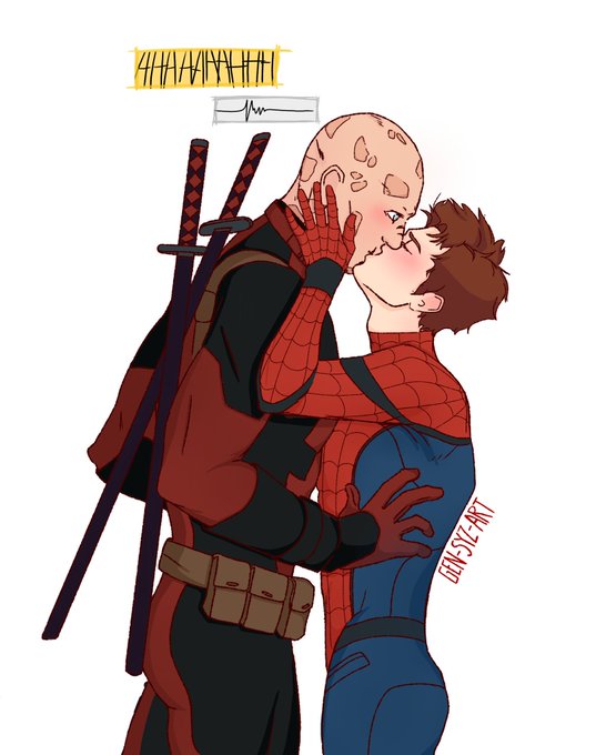 #spiderman #Deadpool #PeterParker #WadeWilson #spideypoolfanart #marvelfanart #firstkiss #WadeIsASweetheart