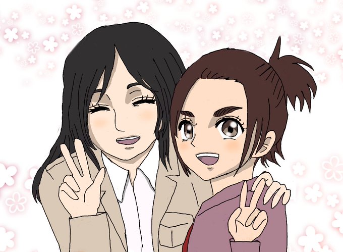 SNOWの顔入れ替え機能で遊んでたら、リヴァイとガビの顔が入れ替わった… (ガビはちょっと顔が歪んでしまったのでカット😅)